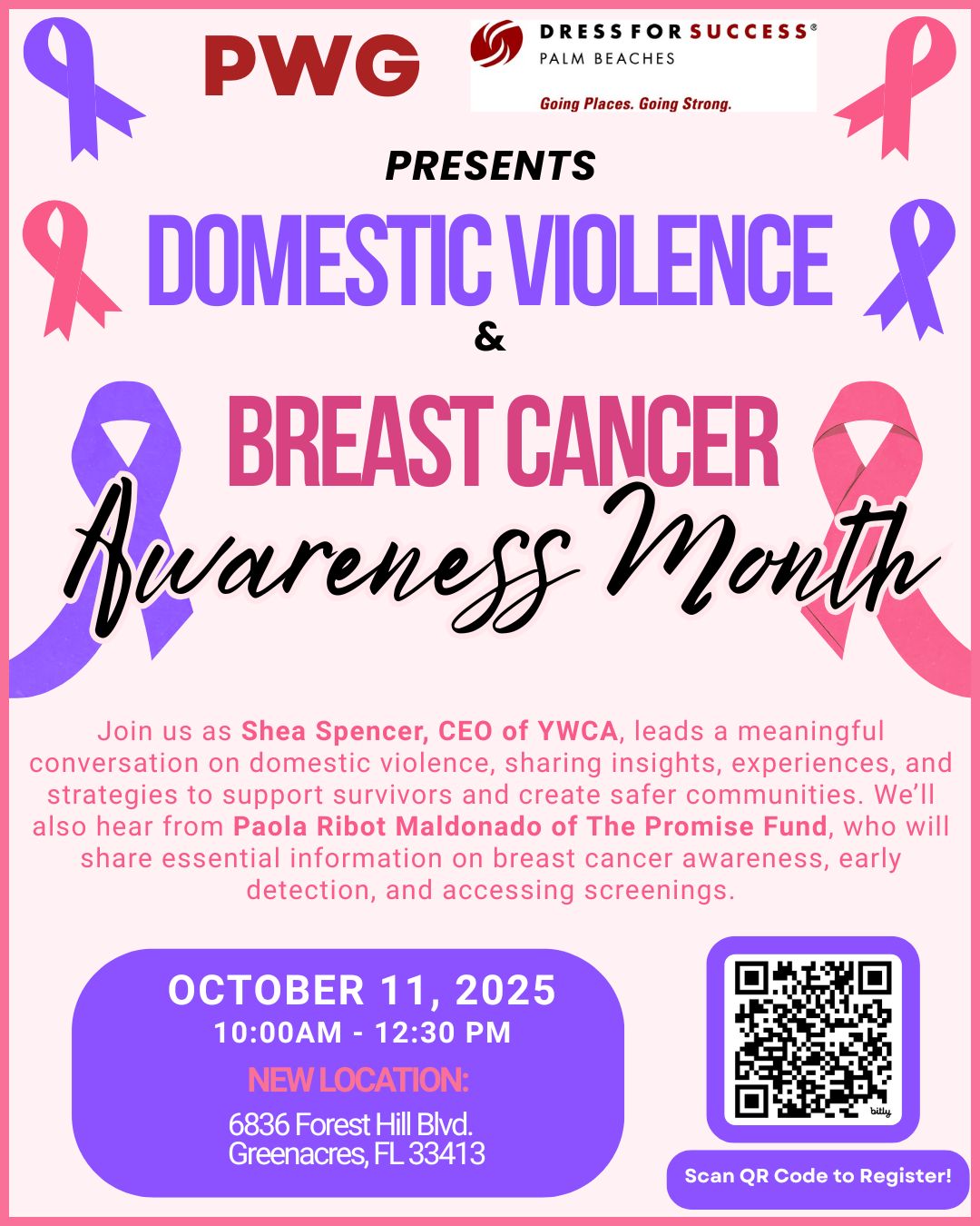 Join us as Shea Spencer, CEO of YWCA, leads a meaningful conversation on domestic violence, sharing insights, experiences, and strategies to support survivors and create safer communities. We’ll also hear from Paola Ribot Maldonado of The Promise Fund, who will share essential information on breast cancer awareness, early detection, and accessing screenings.